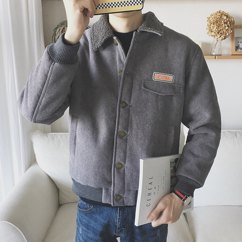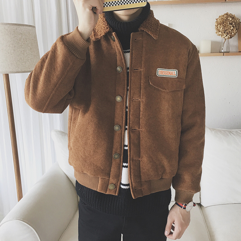 / 新款冬裝韓版寬松男士羊羔毛翻領加厚棉夾克外套