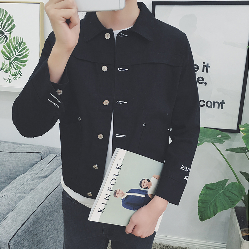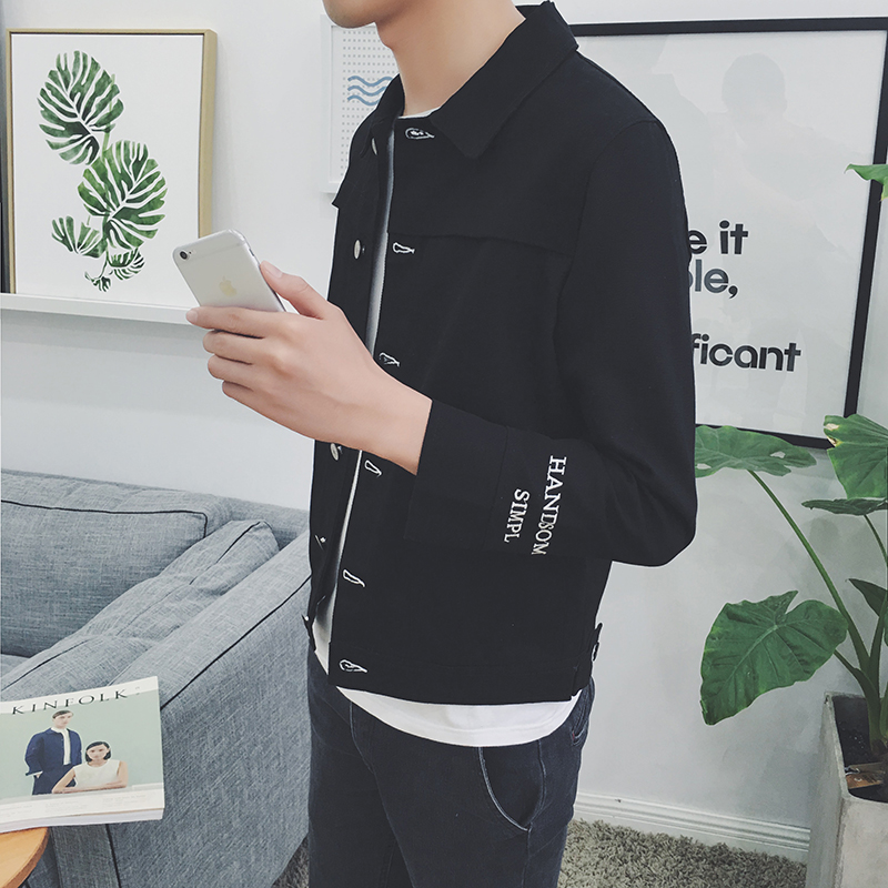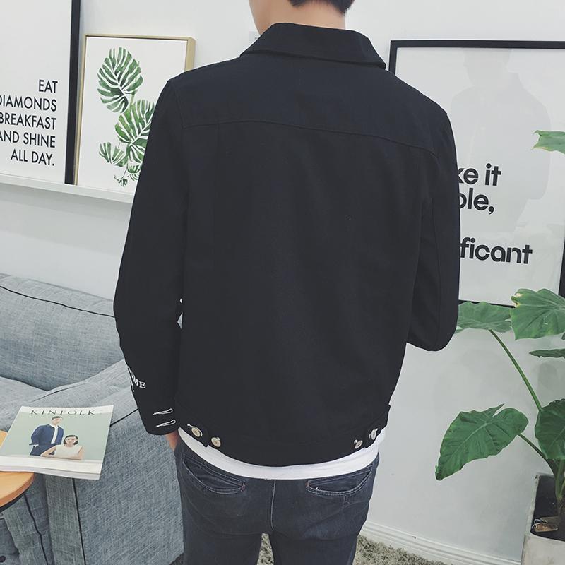 / 原創袖字母繡花潮男修身夾克韓版港風休閑秋新外套
