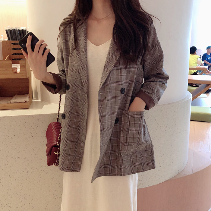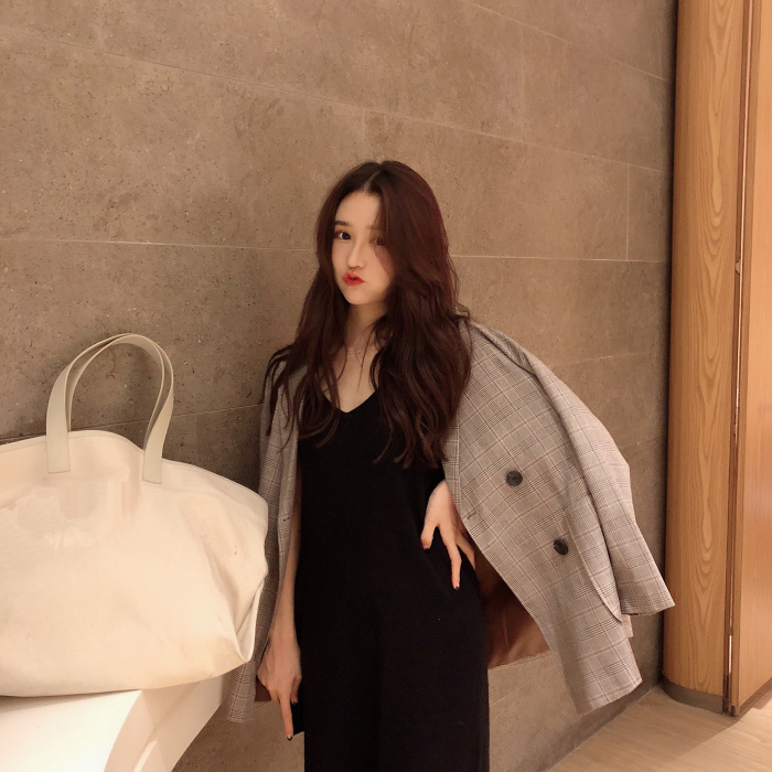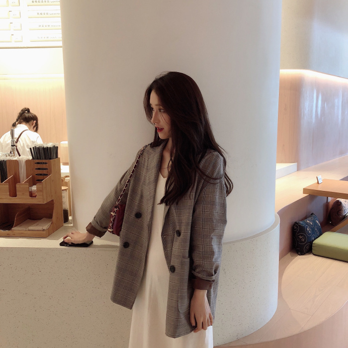 / 兩件套秋裝女復古長袖休閑小西裝外套針織背心長裙御姐范女裝套裝