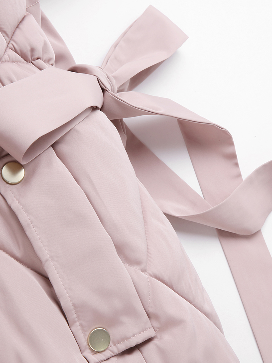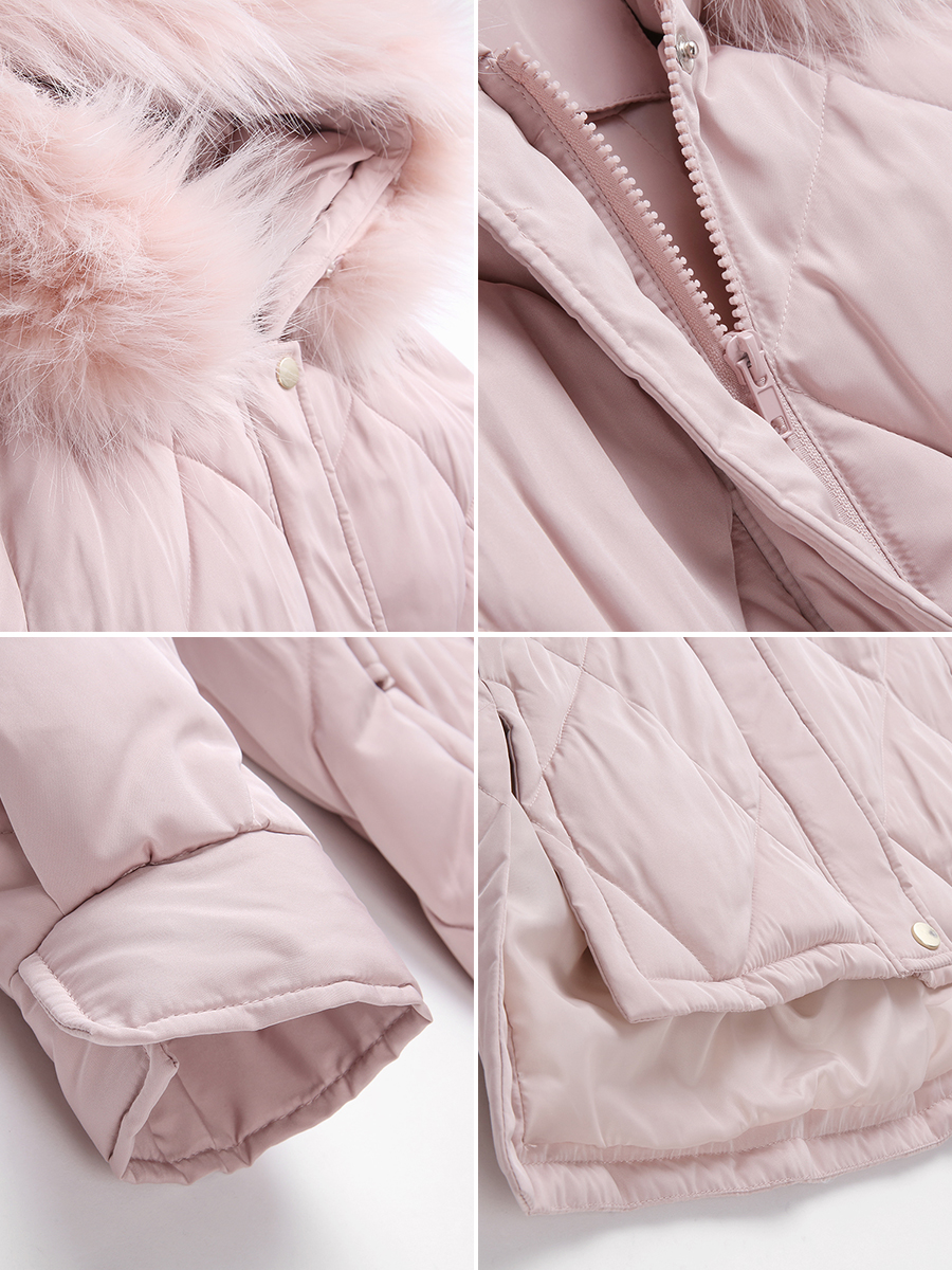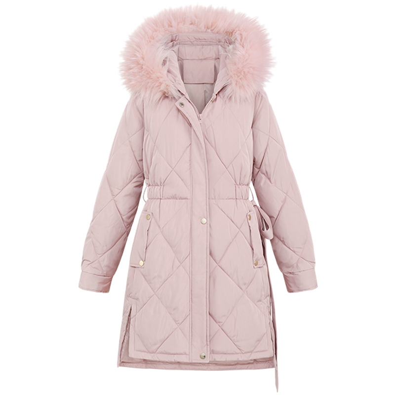 MG小象冬季粉色棉衣女中長款寬松面包服2018新款大毛領棉服外套潮