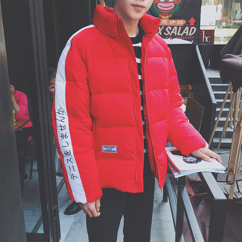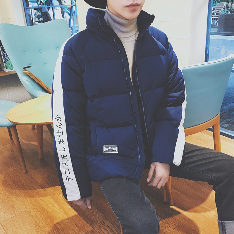 / 男裝港系冬裝個性繡花袖子棉服韓版男士立領棉衣潮