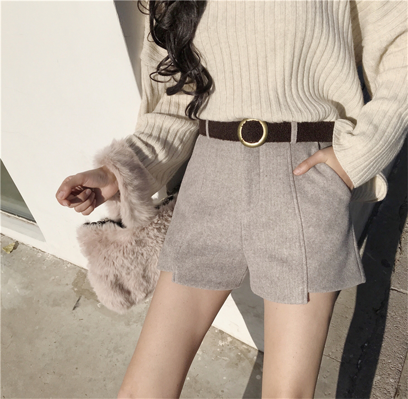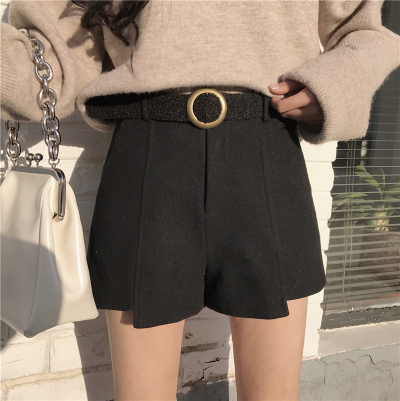 / 褲子女秋2018新款時尚韓版顯瘦學生寬松百搭高腰毛呢短褲配腰帶潮