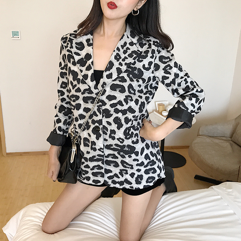 / 新款豹紋西裝外套女寬松氣質時尚百搭復古chic韓版秋季長袖風衣潮