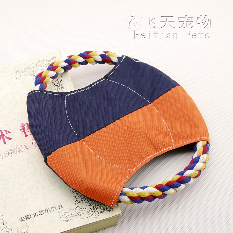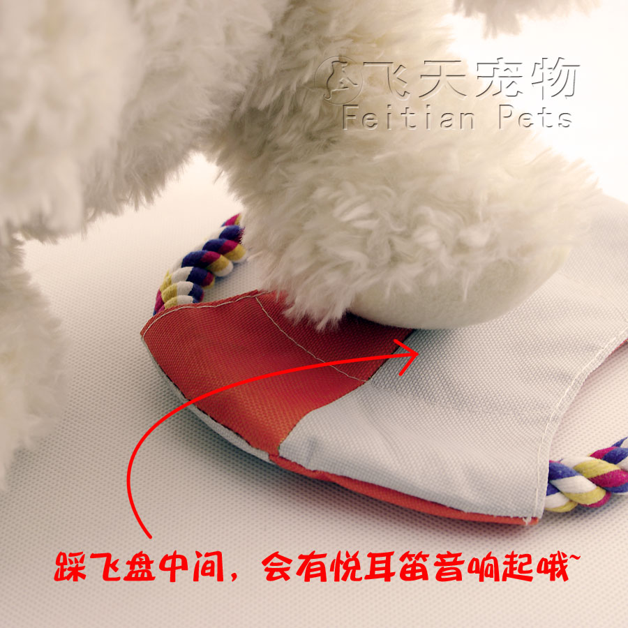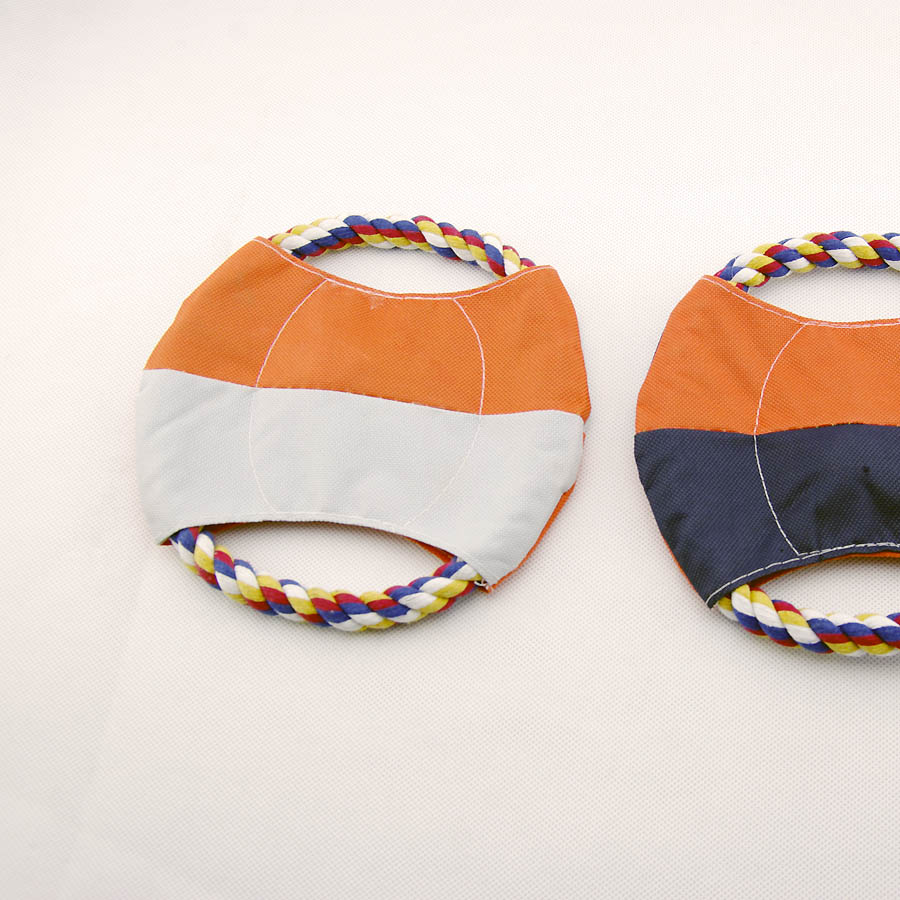 【產品說明】這款飛盤彈棉繩由機器打結,不易被狗狗咬壞或者拆開,表面由十字造型防水帆布制成,里面還含有一個可以通過擠壓發聲的響笛,增加了寵物的玩耍興趣,質地非常輕盈,手感舒適,使您安心離家與狗狗的游戲時間,增進相互的感情。