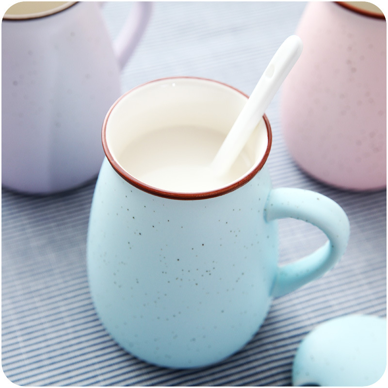 / 牛奶陶瓷杯子帶蓋勺馬克杯創意復古滿天星情侶茶水杯咖啡杯禮品杯