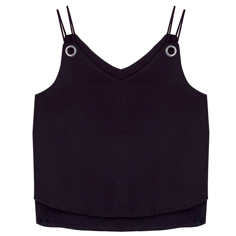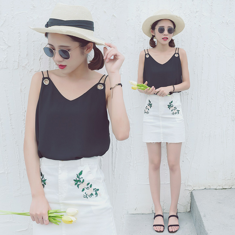 夏季穿搭凸顯清涼感,氣質雙肩帶加小圓環,很chic