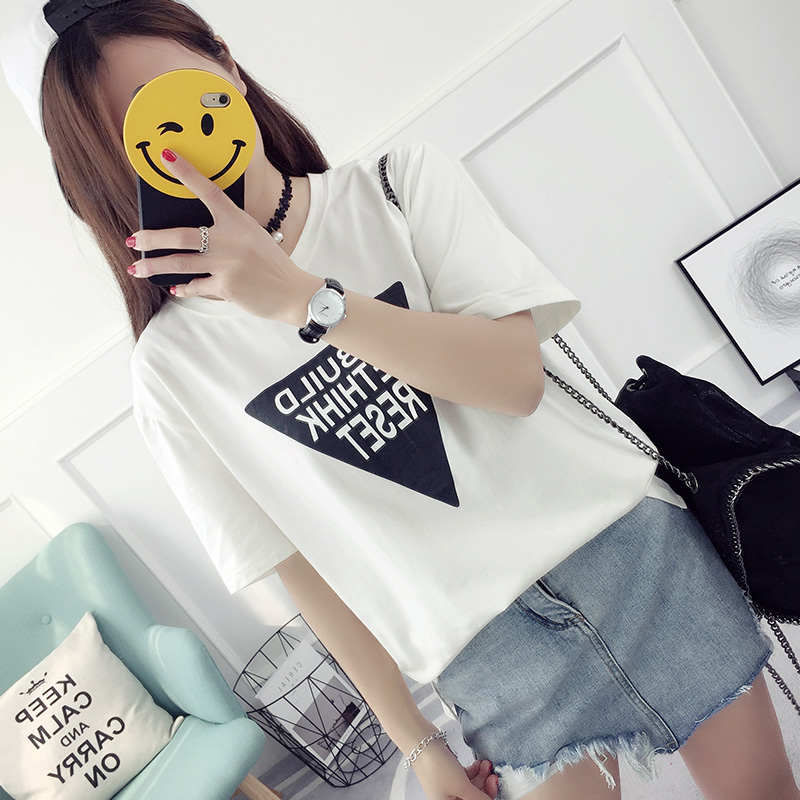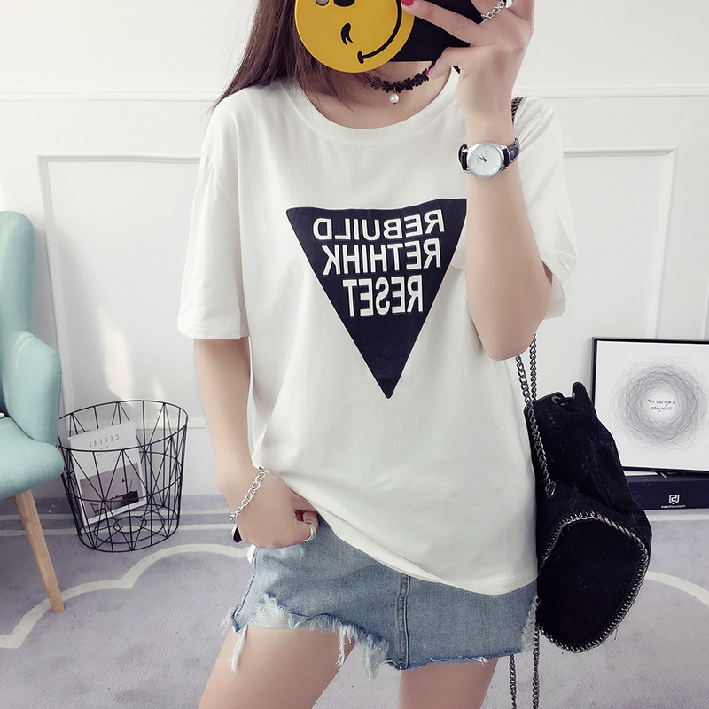 字母印花t恤女短袖學生韓范寬松衣服韓版百搭bf上衣休閑半袖天潮