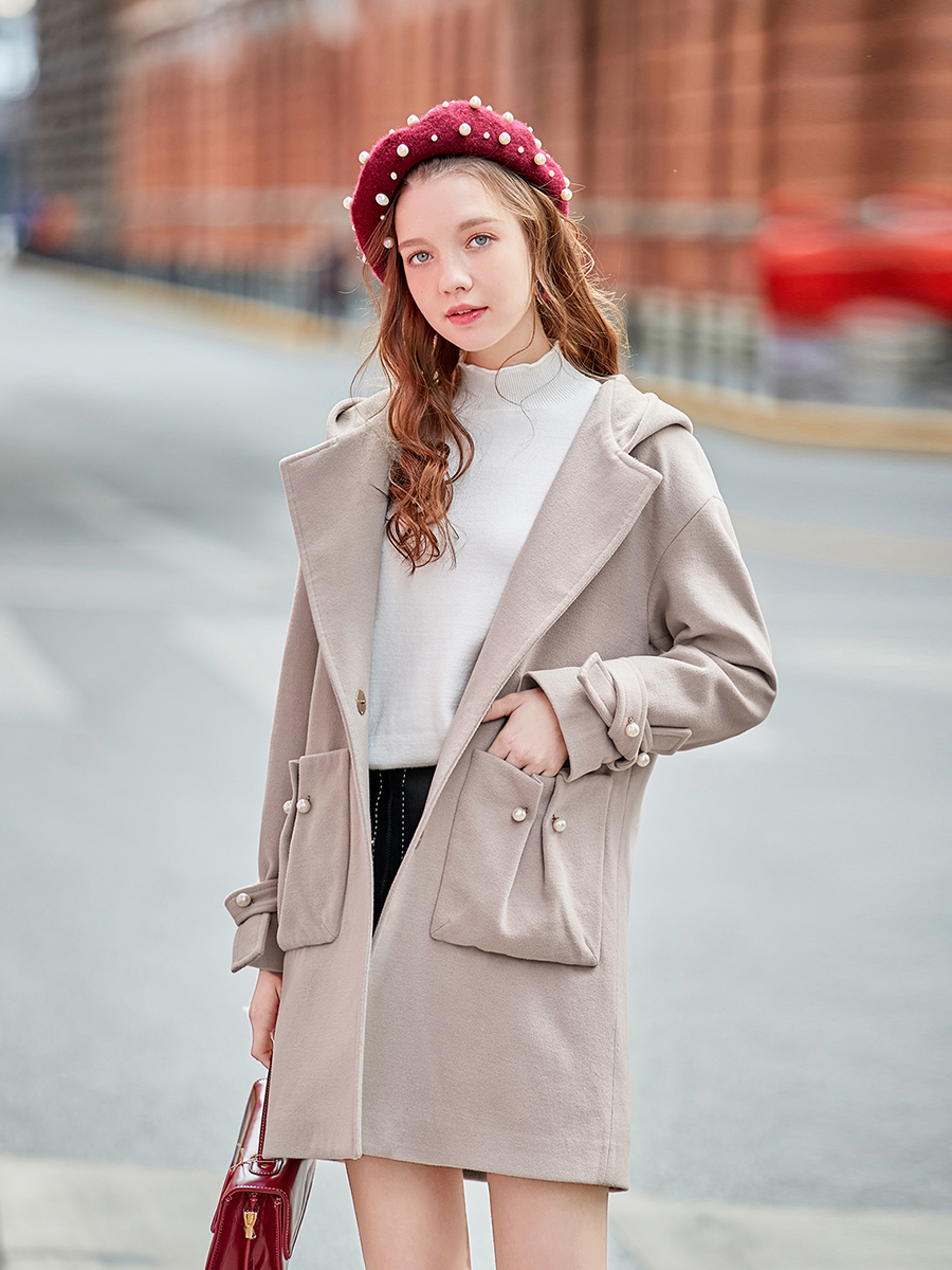 MG小象中長款冬季毛呢外套女新款中長款學生寬松2018流行呢子大衣