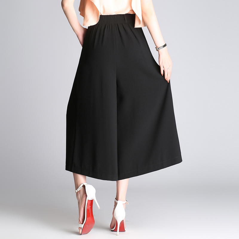 / 裙褲女夏雪紡闊腿褲大碼大腳褲子松緊高腰九分褲甩褲闊腿薄款女褲