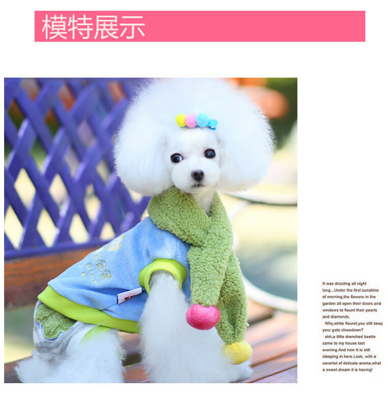 卡通繡花天鵝絨寵物泰迪貴賓犬貓咪比熊衣服裝秋冬送圍巾