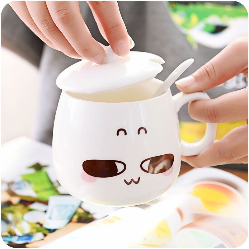 / 創意陶瓷馬克杯情侶杯水杯 陶瓷杯子帶蓋 個性萌系咖啡奶茶表情杯