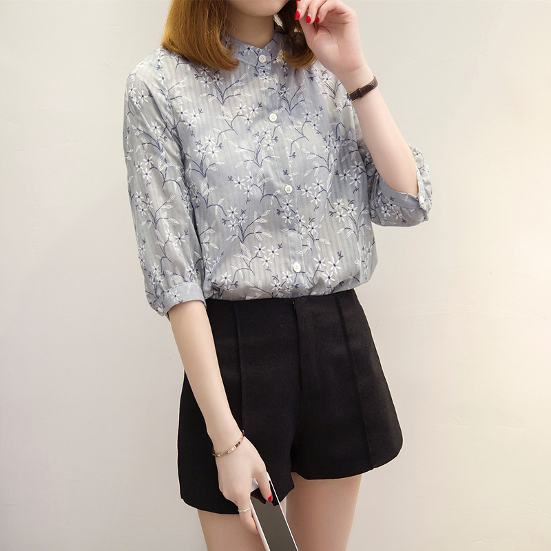 夏裝新款女裝寬松碎花白襯衣女夏季小清新上衣韓版雪紡襯衫女