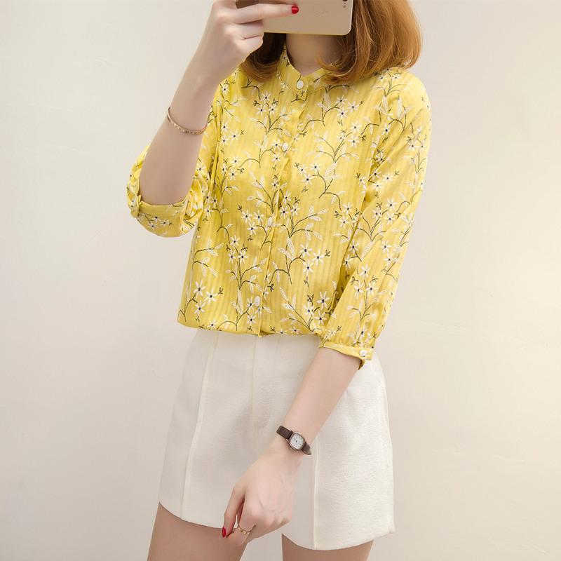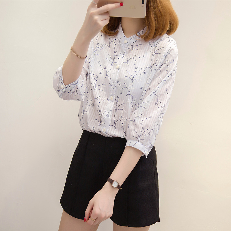 / 夏裝新款女裝寬松碎花白襯衣女夏季小清新上衣韓版雪紡襯衫女