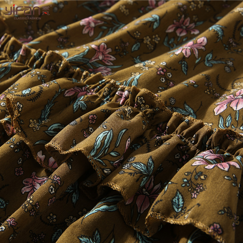 / 春夏雪紡拼接百褶連衣裙女裝韓版碎花長袖打底沙灘裙新款