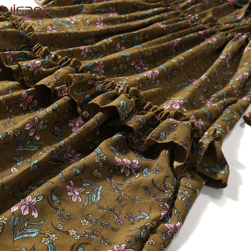 春夏雪紡拼接百褶連衣裙女裝韓版碎花長袖打底沙灘裙新款