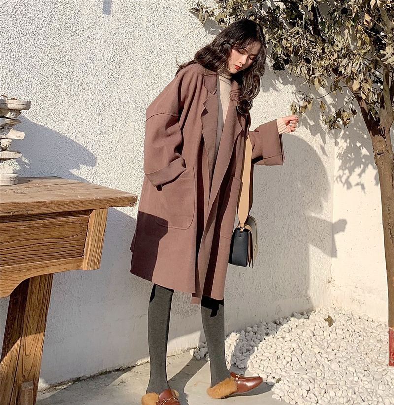 / 2018新款保暖時尚開衫大衣女中長款秋冬季韓版學生毛呢呢子外套潮