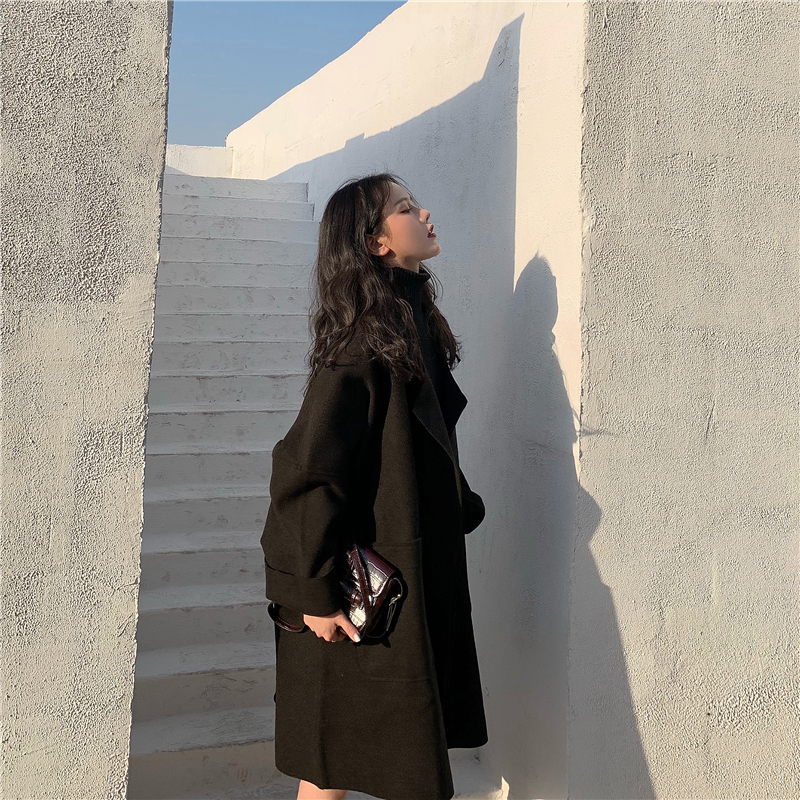 2018新款保暖時尚開衫大衣女中長款秋冬季韓版學生毛呢呢子外套潮