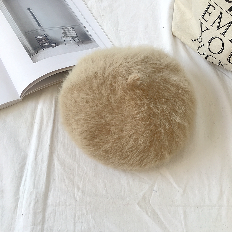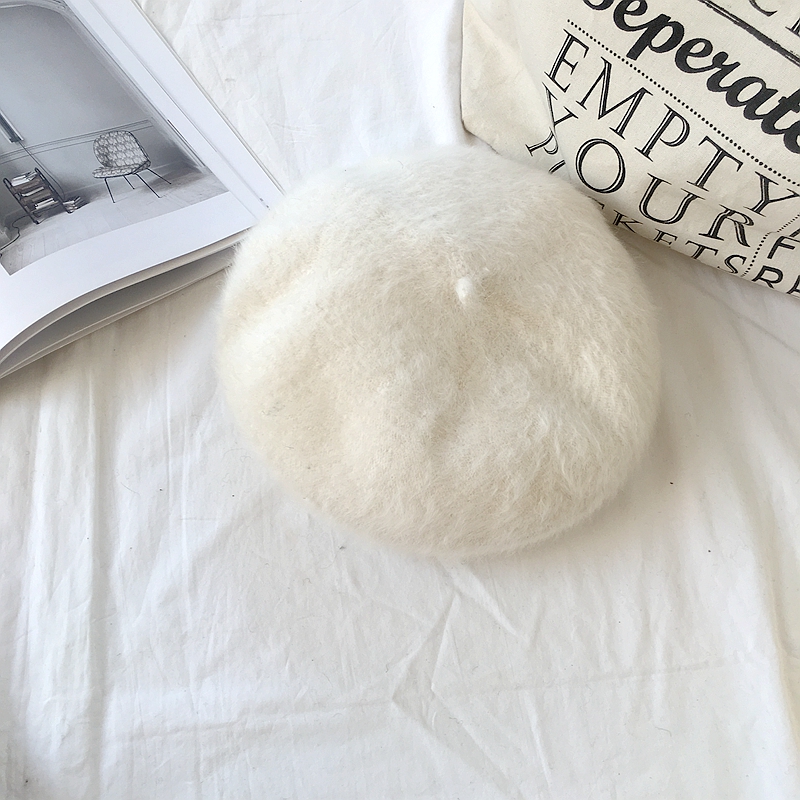 / 秋冬新款韓版復古chic風蓓蕾帽甜美純色加厚清新針織兔毛貝雷帽女