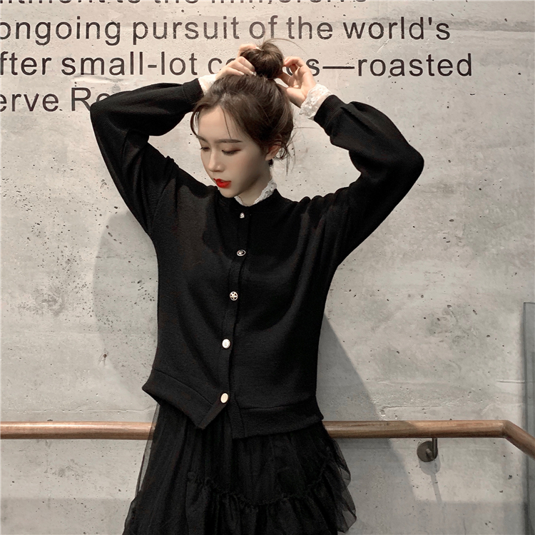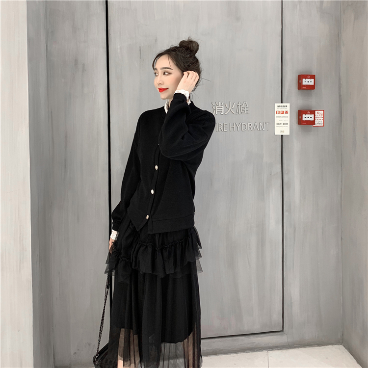 2018秋冬新款宮廷風蕾絲拼接復古氣質短上衣網紗半身裙時尚套裝潮