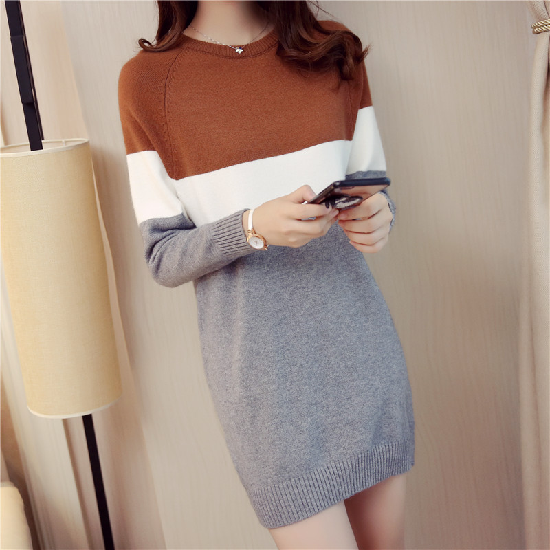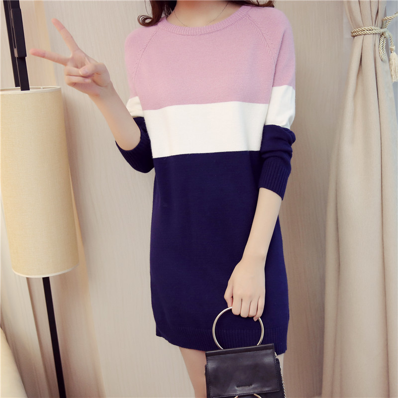 / 秋季女裝針織衫套頭上衣外套打底衫長款毛衣女秋冬長袖新款潮