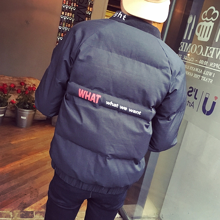 男裝韓版寬松印花插肩袖棒球服男士棉衣短款面包服