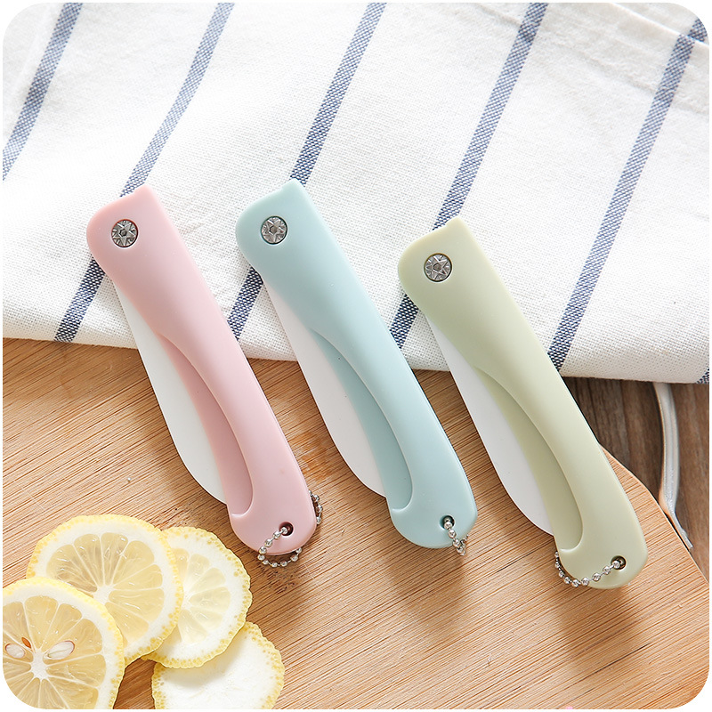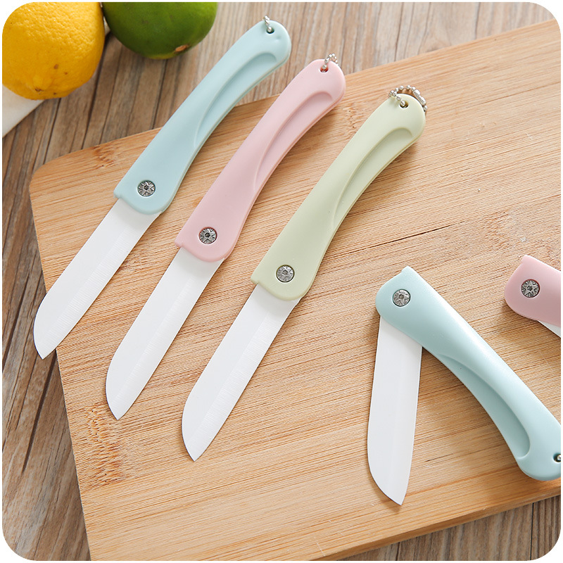 / 便攜可折疊陶瓷家用水果小刀居家廚房刀具日用旅游弧形刀面帶掛繩