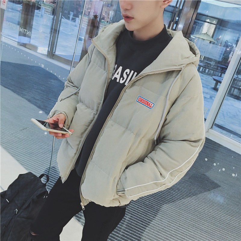 / 男裝新款韓版撞色拼接寬松版男士連帽棉服短款棉衣