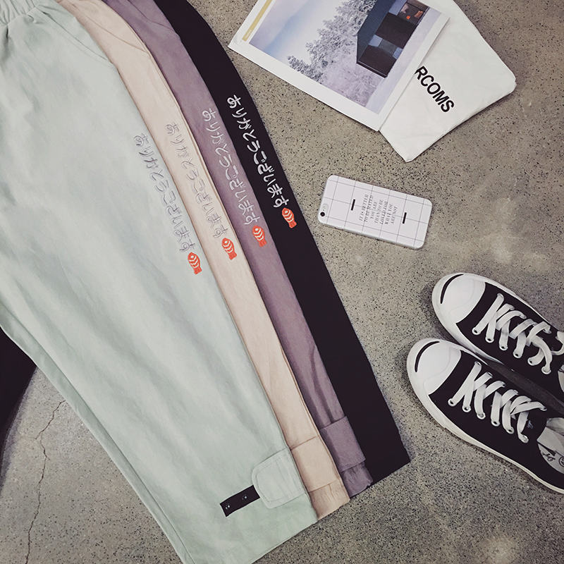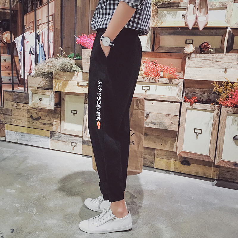 / 原創港風潮男休閑九分褲哈倫褲日系寬松港風棉麻褲