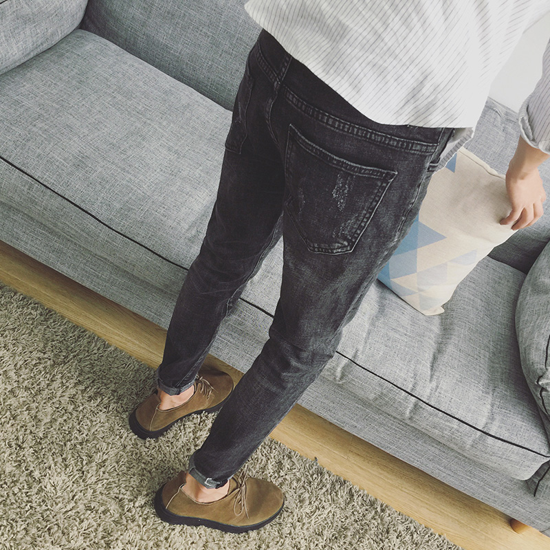 / 新款男裝韓版修身裁剪小腳男士水洗貓須牛仔褲男褲