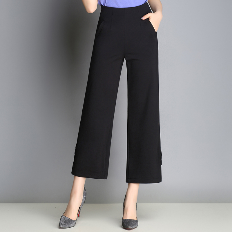 闊腿褲女夏季薄款高腰西裝九分褲寬松顯瘦黑色七分直筒褲韓版