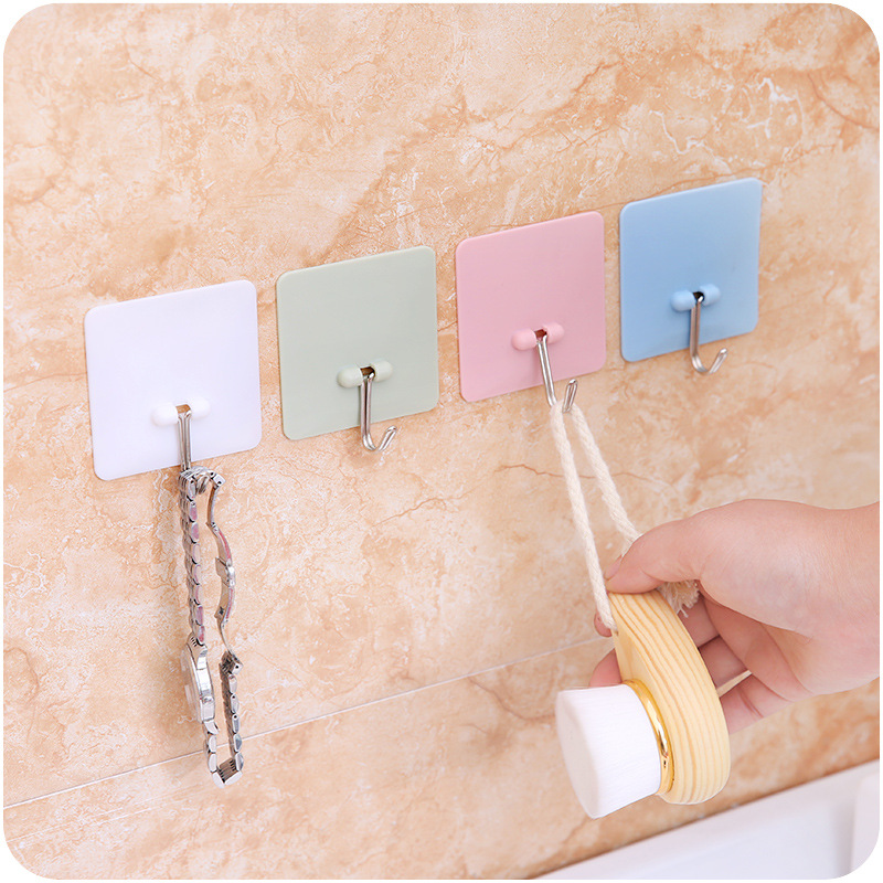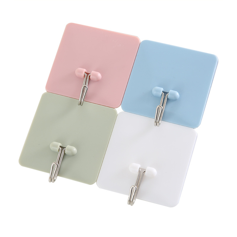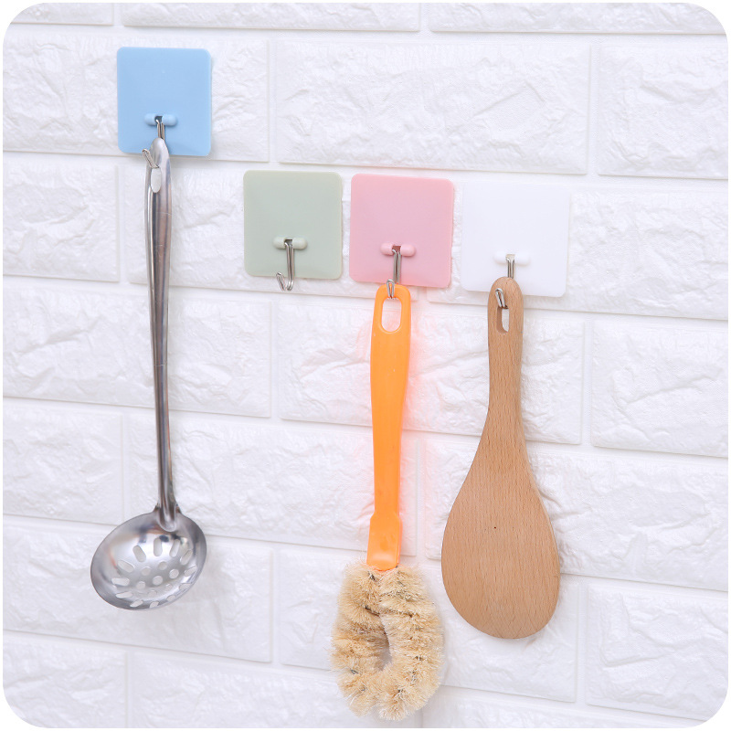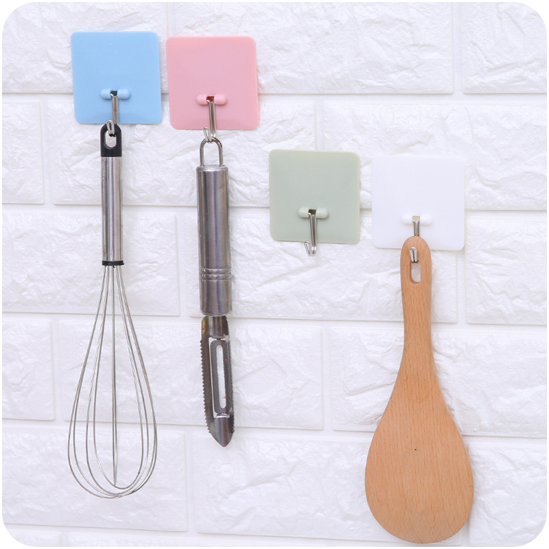 / 創意素色掛鉤方形免釘粘膠掛鉤廚房墻壁無痕掛鉤浴室粘鉤門后掛鉤