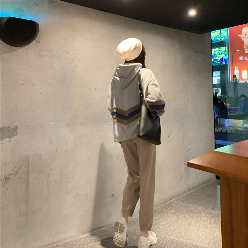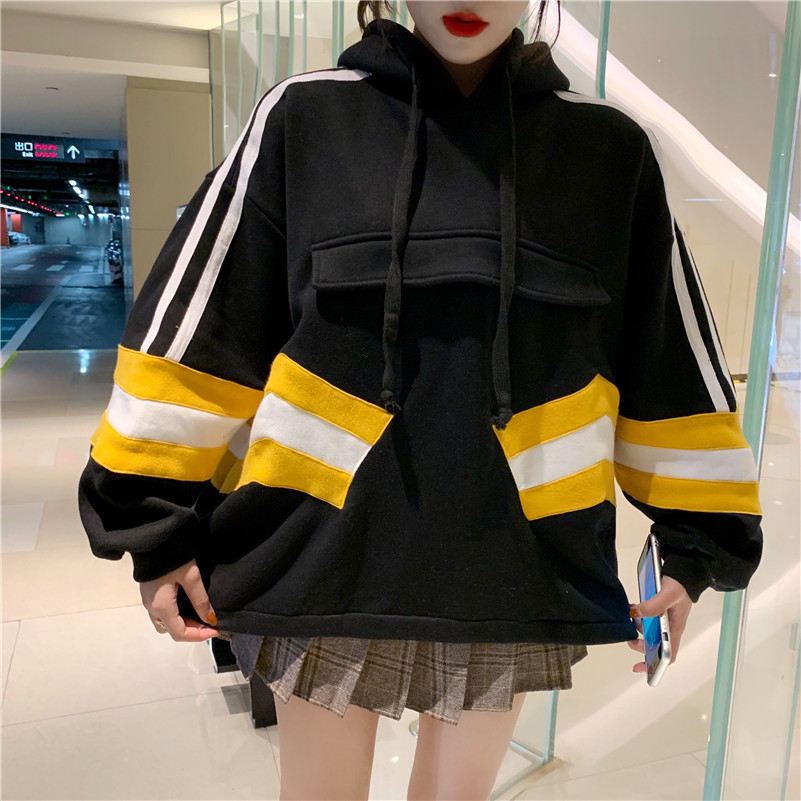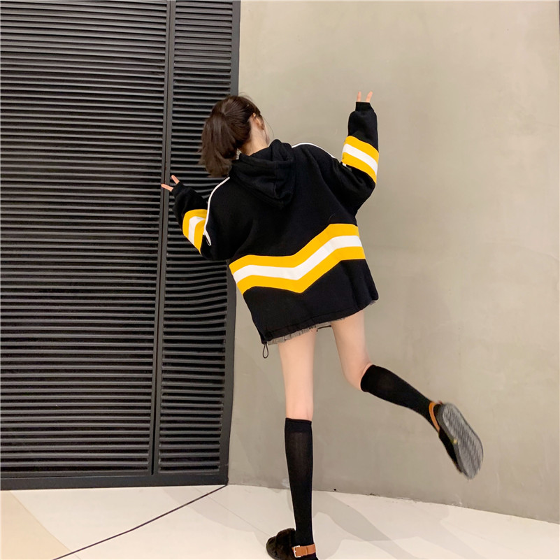 / 韓版寬松連帽新款時尚小清新chic港風拼接衛衣女加絨厚外套學生潮