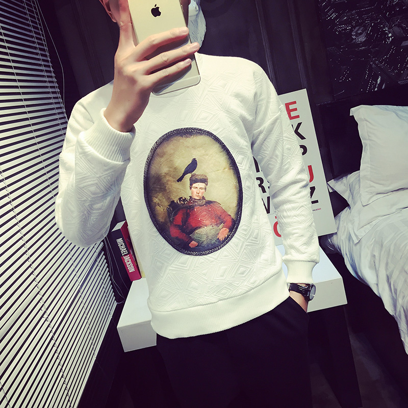 / 原創小鳥貼布精梳棉韓版修身男士套頭衛衣大碼男裝