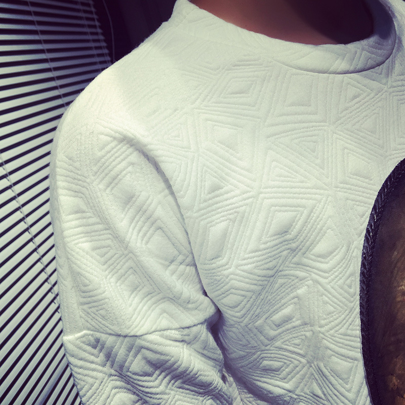 原創小鳥貼布精梳棉韓版修身男士套頭衛衣大碼男裝
