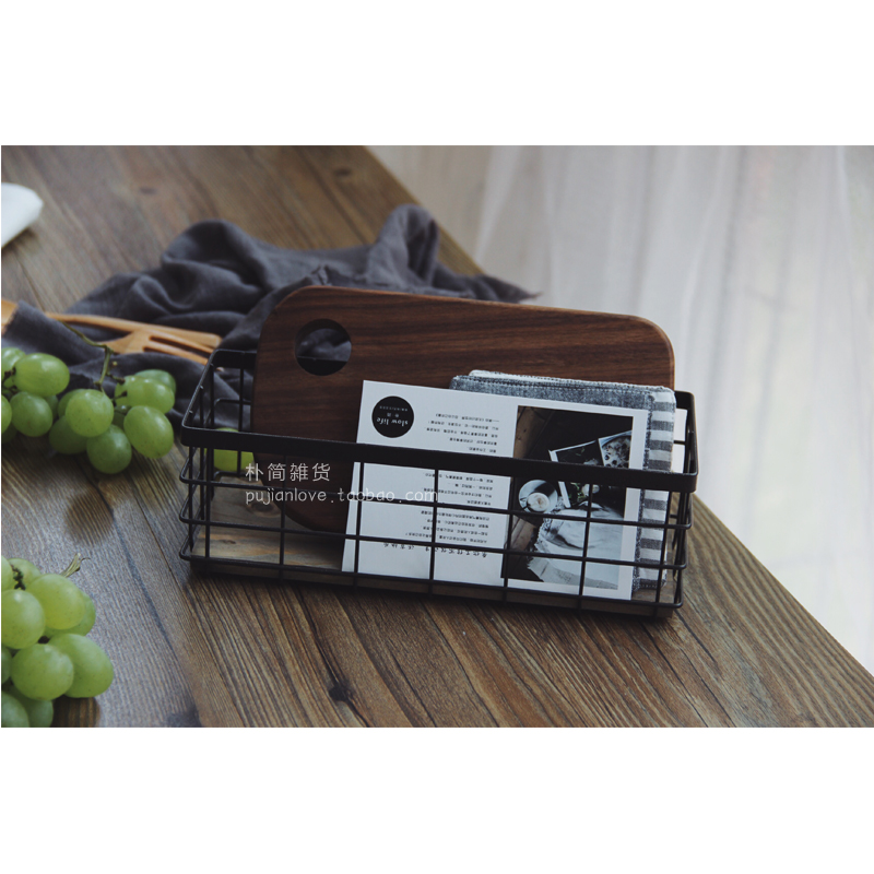 長方形黑棕鐵籃子