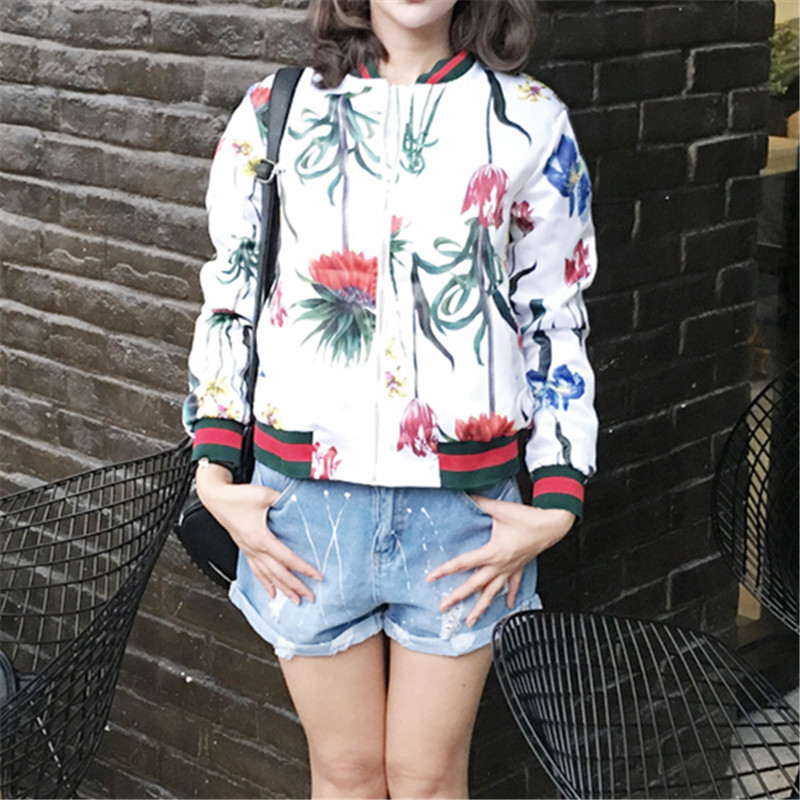 / 韓國chic復古街頭秋冬花朵印花撞色棒球服寬松情侶棒球外套女