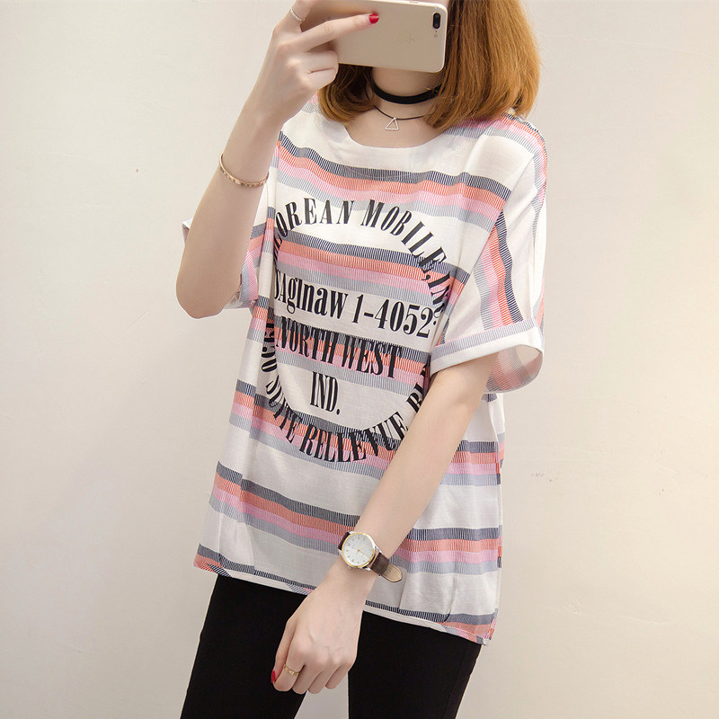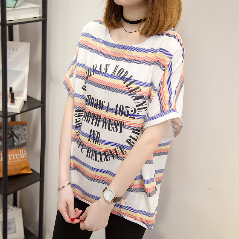 短袖上衣女夏新款條紋t恤女韓版學生小清新bf風體恤衫女百搭