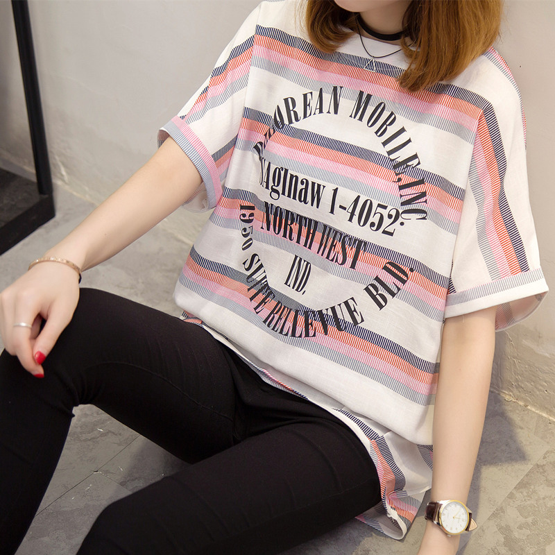/ 短袖上衣女夏新款條紋t恤女韓版學生小清新bf風體恤衫女百搭