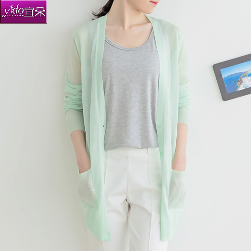 / 中長款針織衫女開衫春秋款寬松中長款長袖針織衫防曬衫針織外套薄