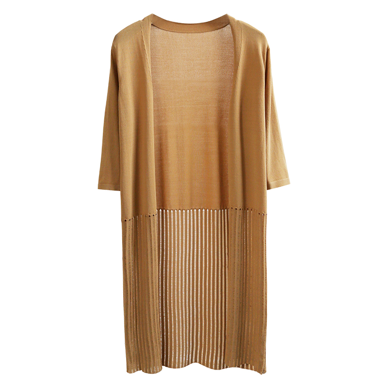 / 冰麻針織衫新款開衫女防曬衫中長款夏季薄款七分袖外套空調衫