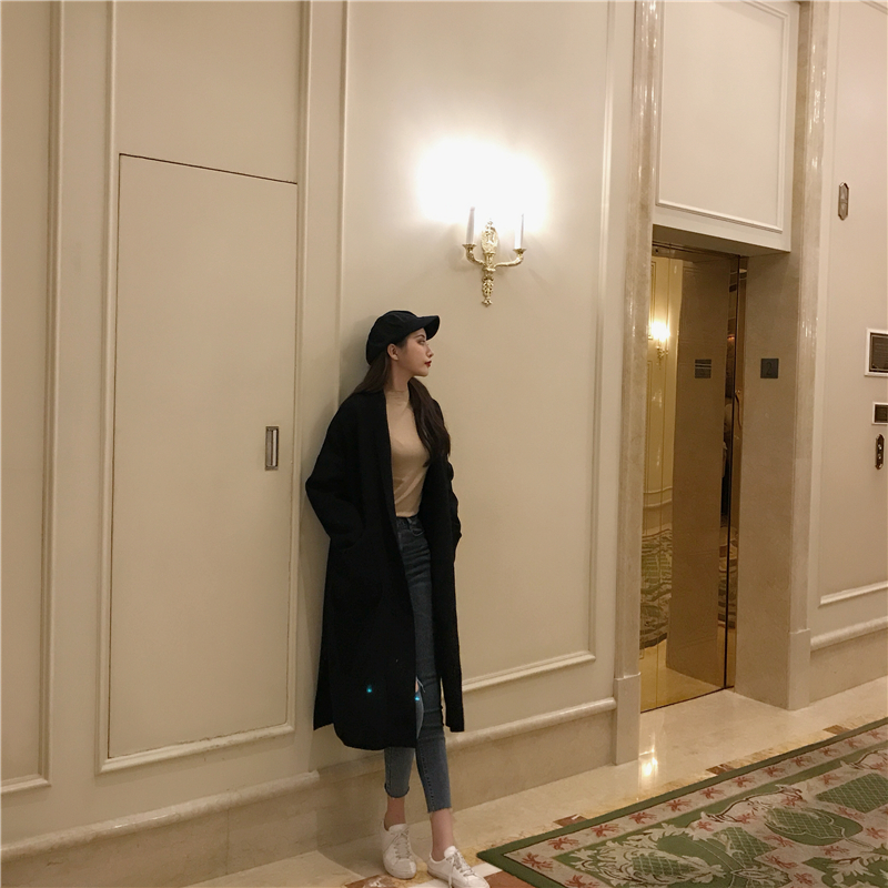 / 復古港風chic寬松百搭氣質新款韓版毛呢雙口袋開叉中長款外套女裝