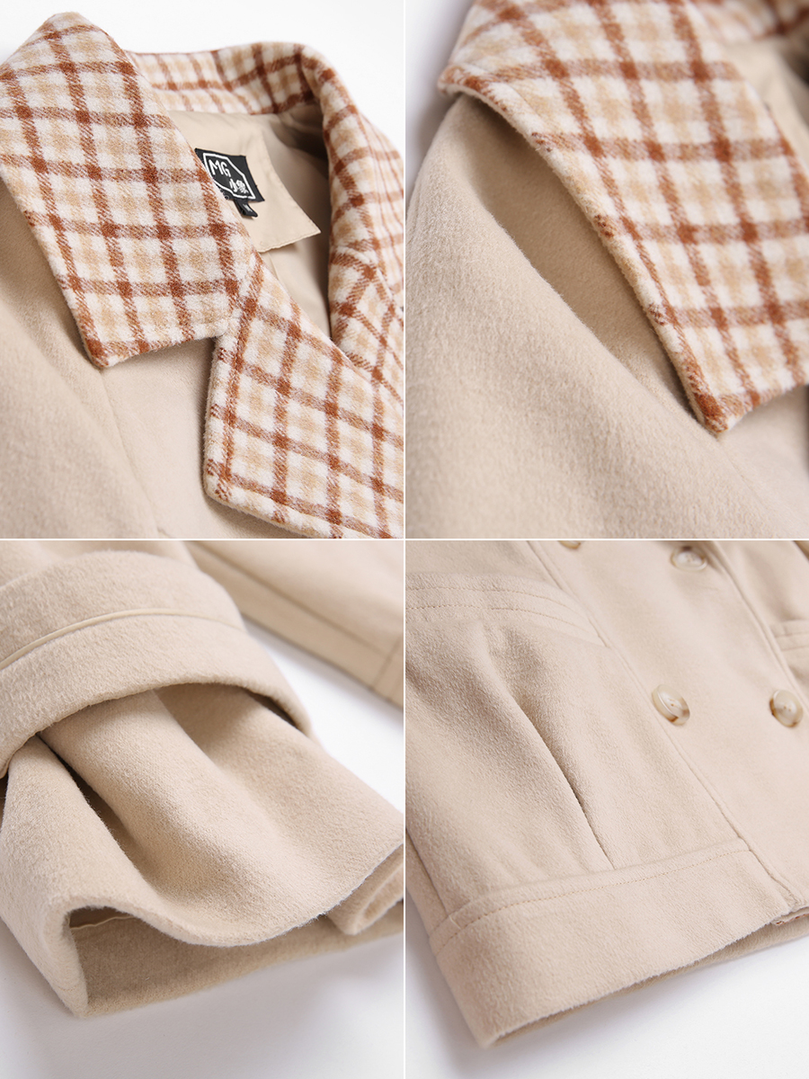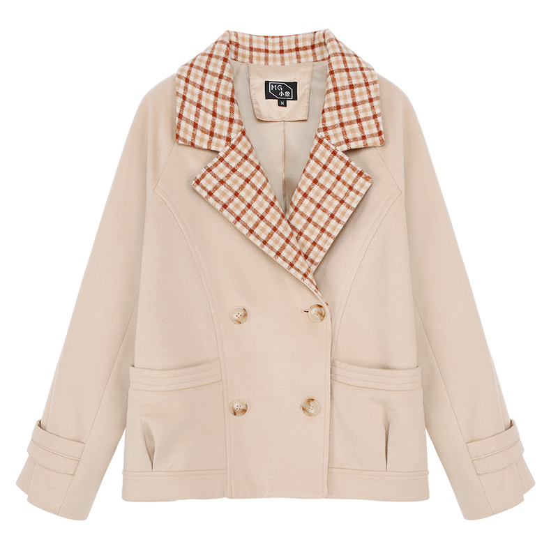 MG小象冬季寬松毛呢外套女2018流行新款韓版顯瘦格子學生呢子大衣