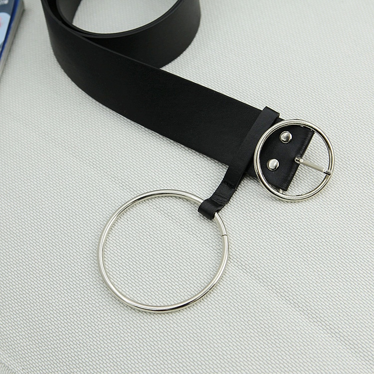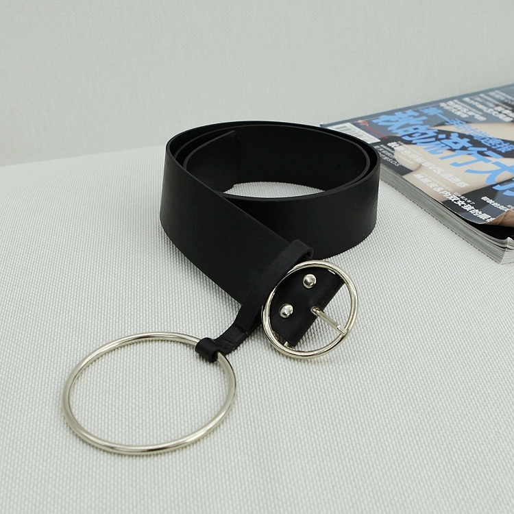 韓版新款學生銀色大環圈皮帶簡約休閑百搭防水圓扣腰帶褲帶女