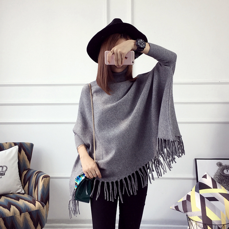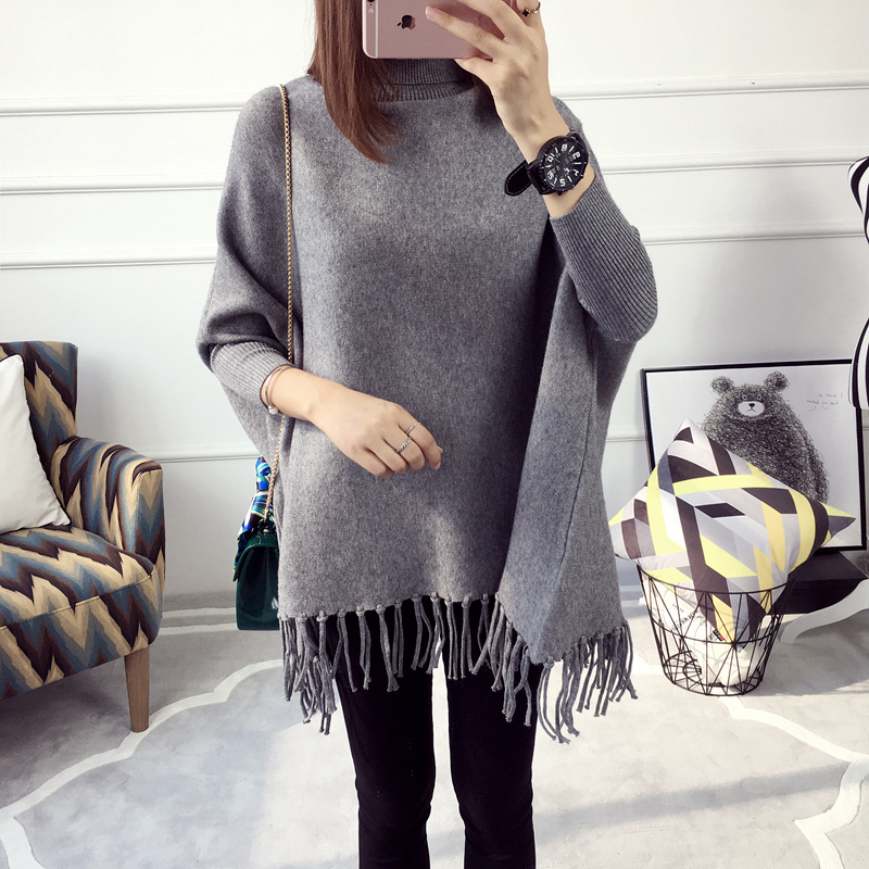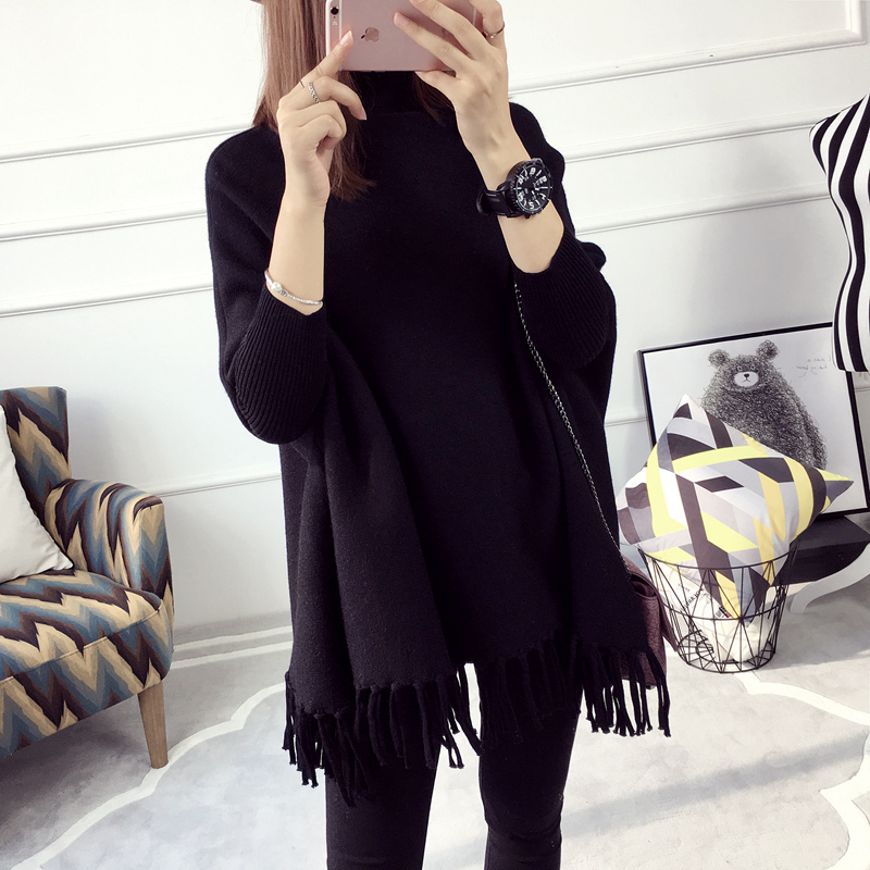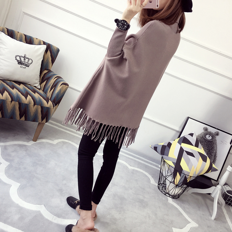 / 秋裝女裝新款潮流蘇寬松蝙蝠衫套頭毛衣女秋冬套頭學生針織衫