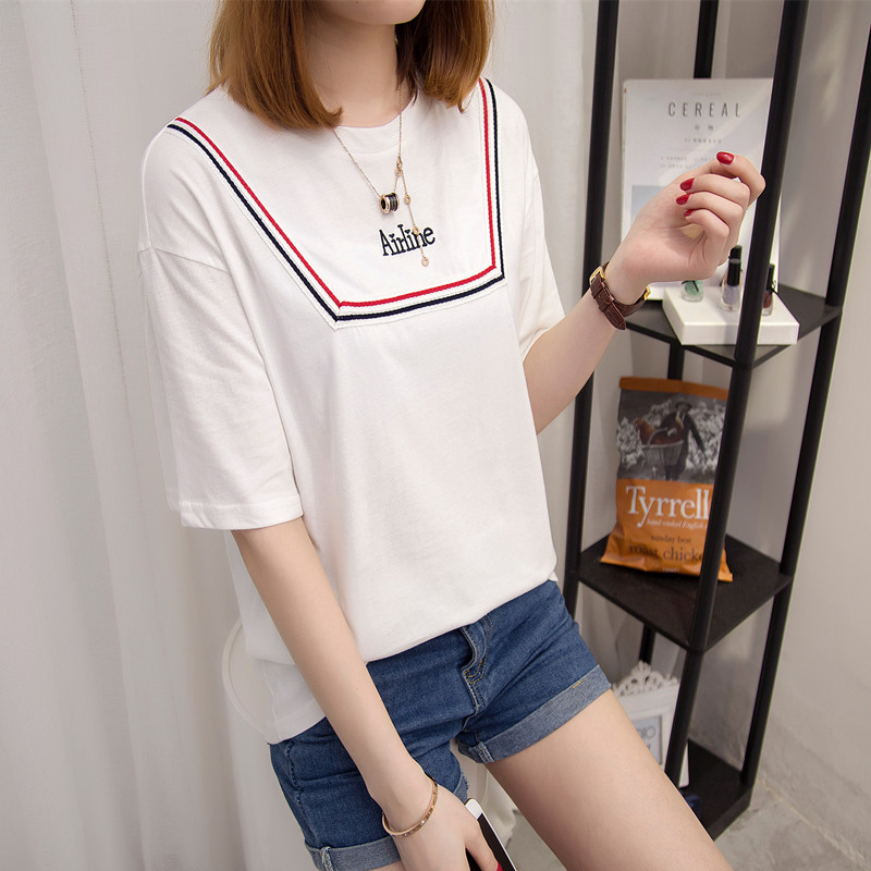 / 寬松t恤女白色短袖上衣女夏新款潮打底體恤衫韓版條紋百搭
