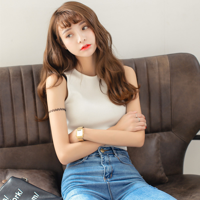 百搭修身復古針織衫背心女夏短款打底衫針織背心無袖打底上衣