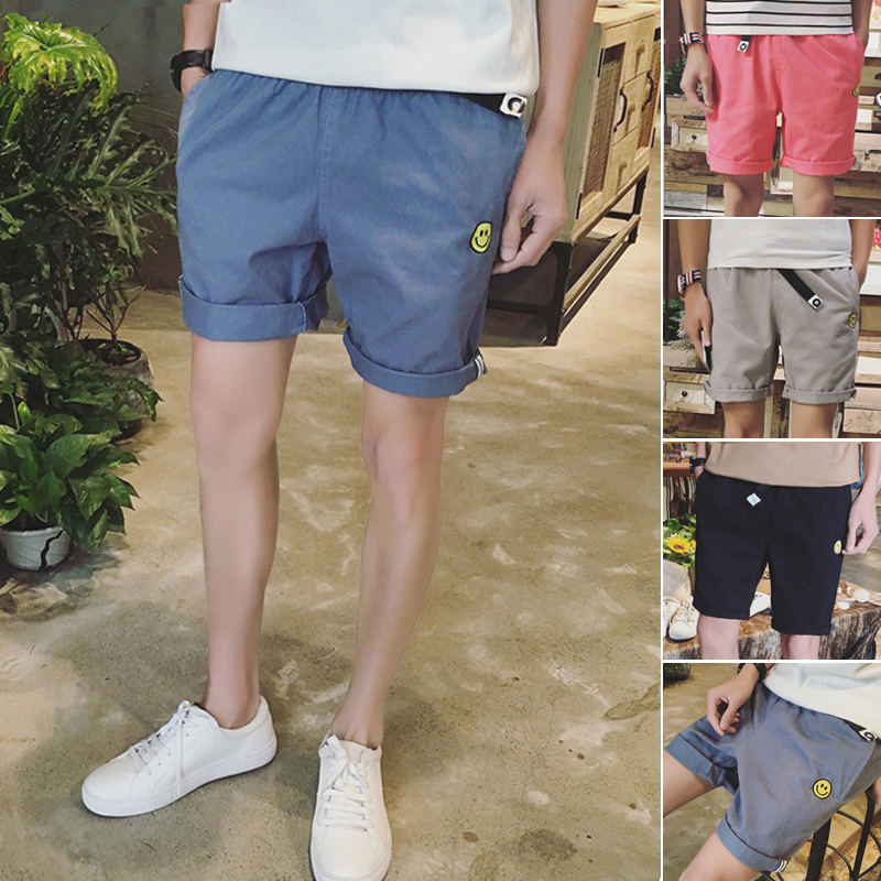 / 男裝日韓系笑臉運動五分褲男修身直筒男士短褲