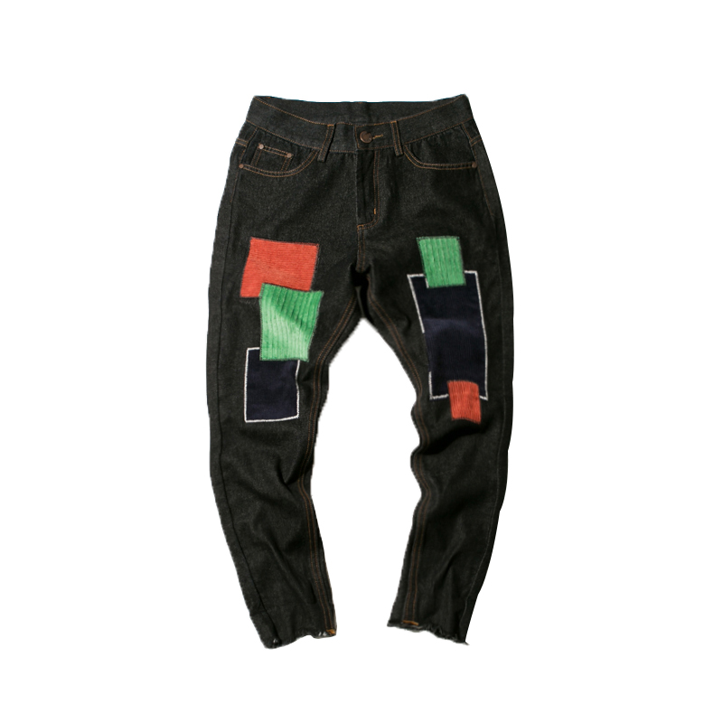 春冬新款日系復古燈芯絨撞色男士長褲哈倫褲牛仔褲