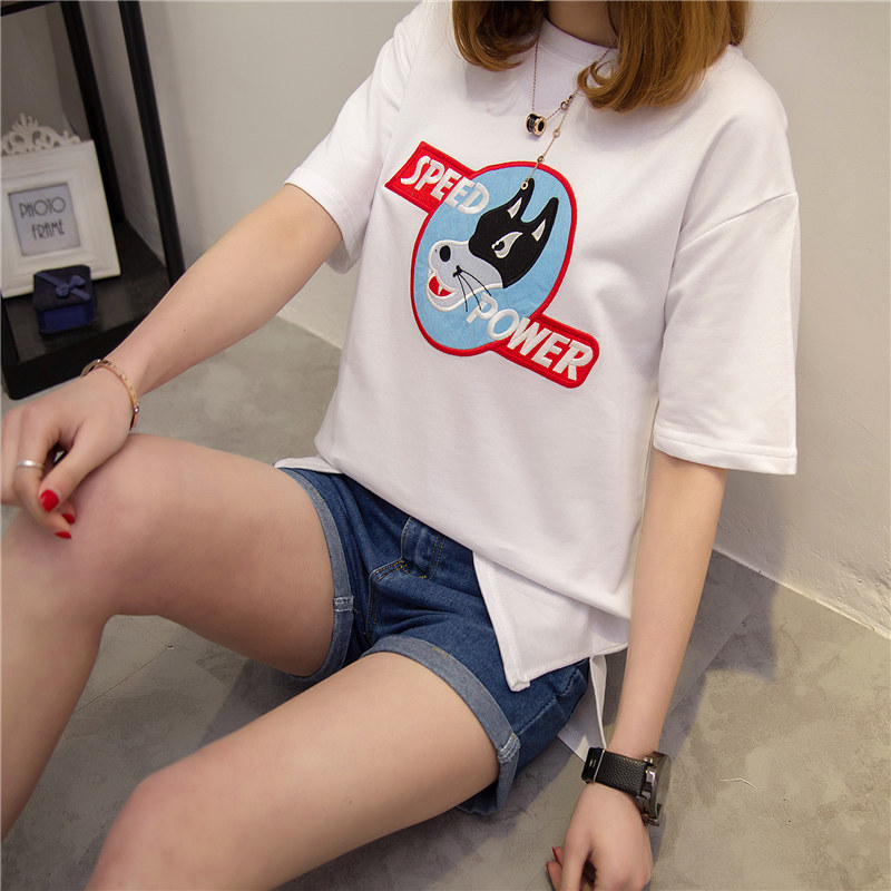 / 衣服女春裝新款潮夏裝短袖t恤女寬松上衣韓版中長款打底衫女