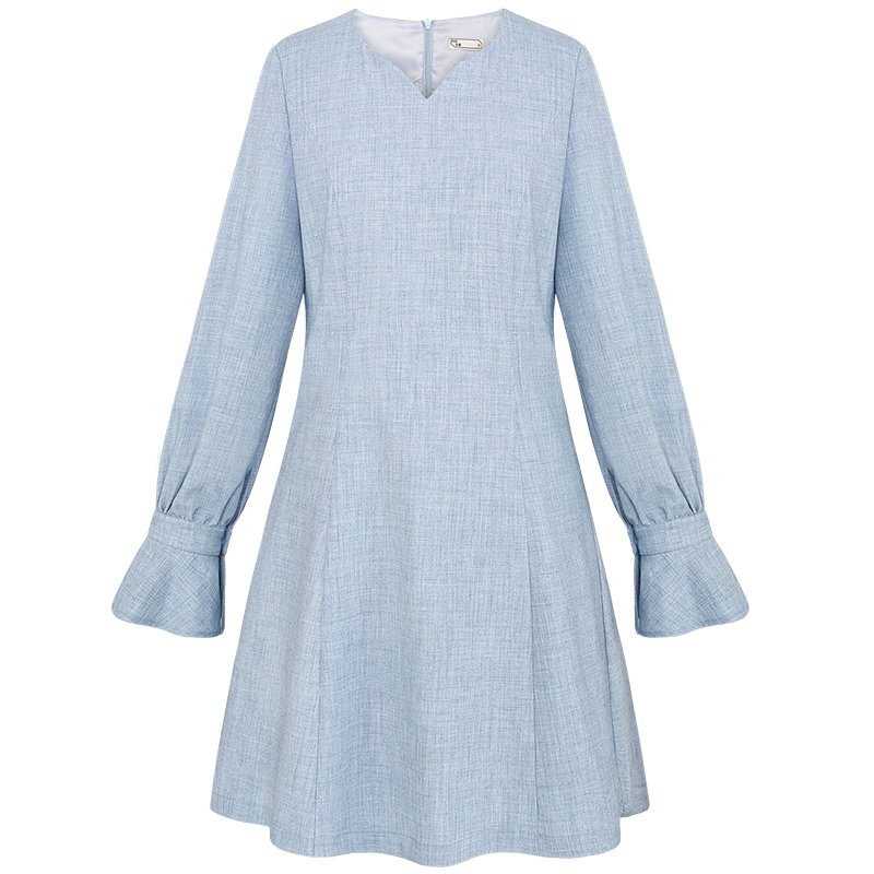 MG小象中長款收腰連衣裙女長袖秋裝2018新款修身顯瘦時尚氣質裙子